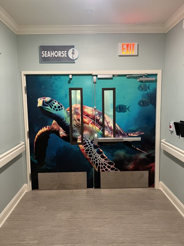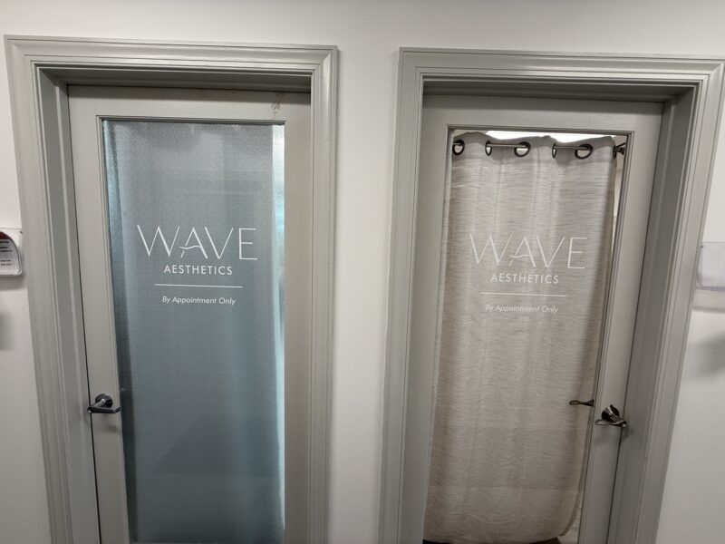- Frosted or etched vinyl graphics for privacy or simply to create an elegant look