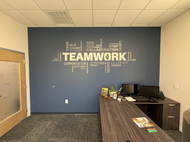 - Cut vinyl graphics on exterior windows or interior glass doors and walls
