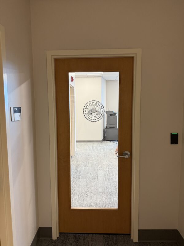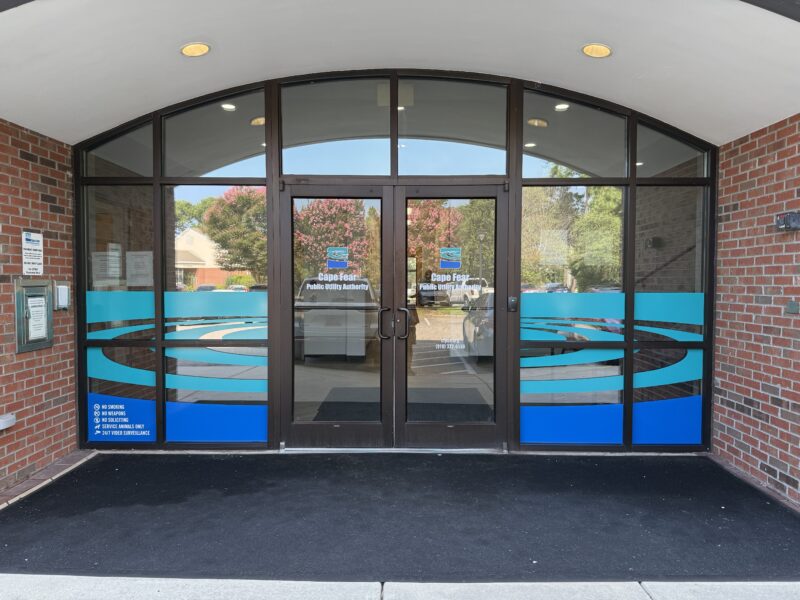Make a strong first impression with professional window lettering in Wilmington, NC that highlights your business and makes a strong first impression. Most entrance doors include a quality business logo at eye level, plus business hours, contact information, website, and social media information. This can be done in full color or elegantly presented as one color cut vinyl.